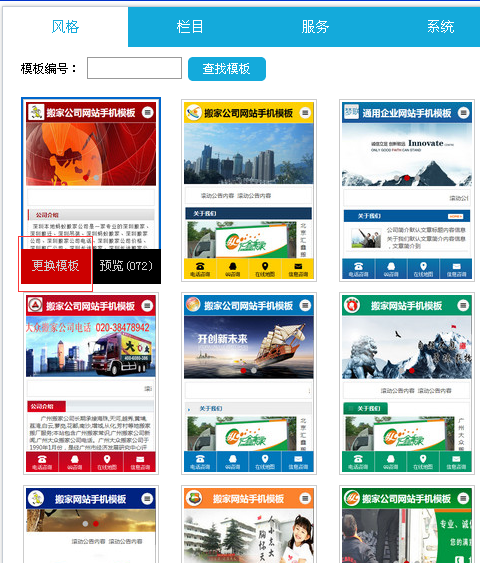 風(fēng)格下面對著的有個模板編號的 您有看好的模板用編號來查找 更方便利于您的時間